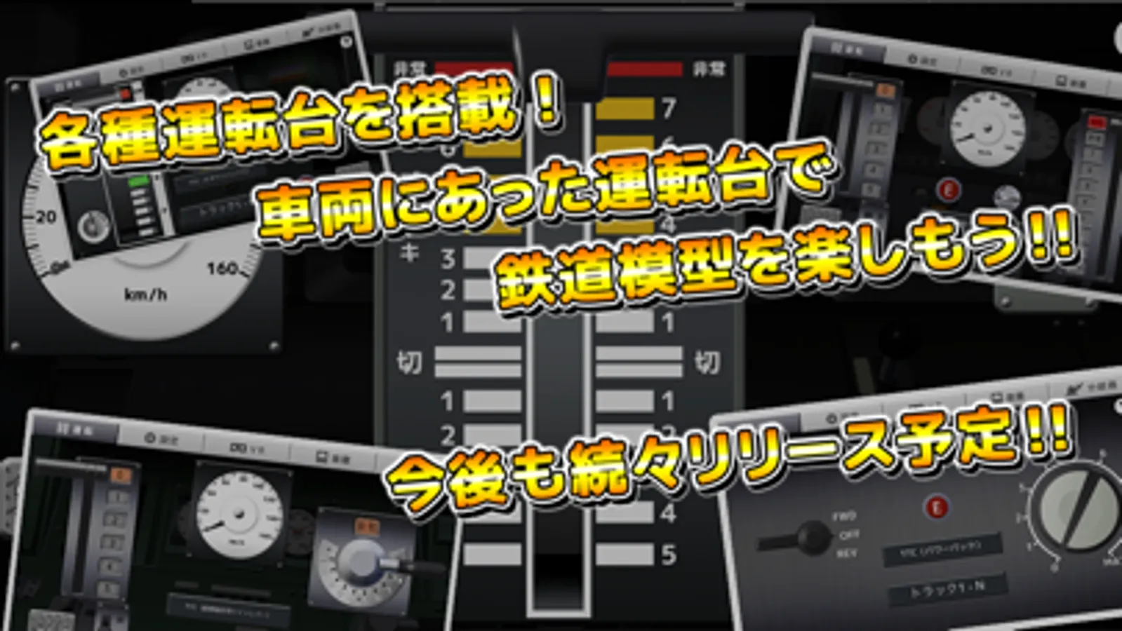 スマートホン/タブレット画面で、実車をイメージした運転台で鉄道模型を実車と同じように走らせることができます。