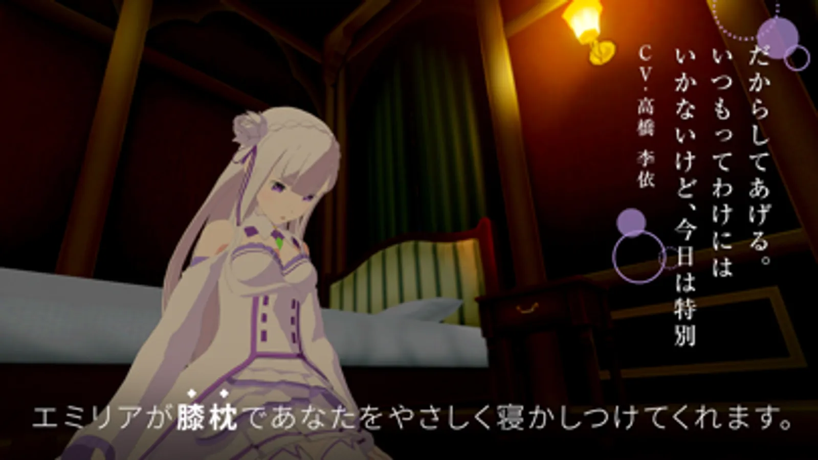 *"Lap pillow" mode: Rest your head on Emilia's lap as she gently eases you into sleep.
