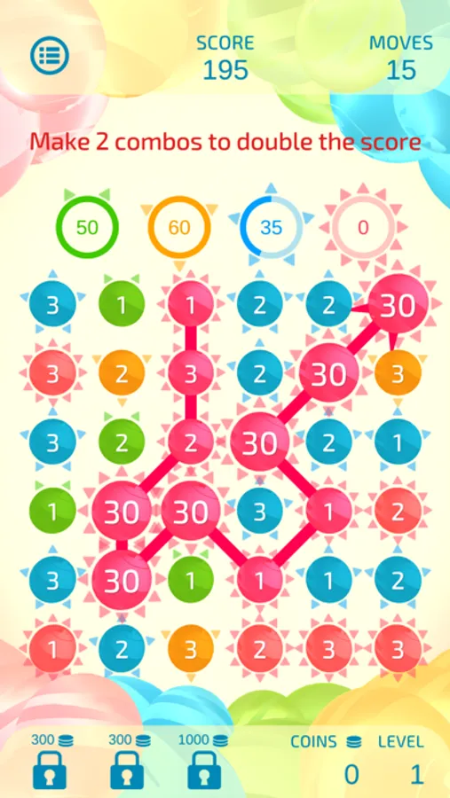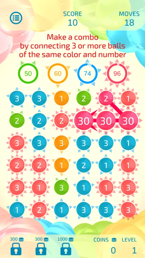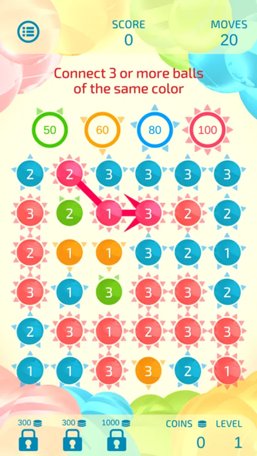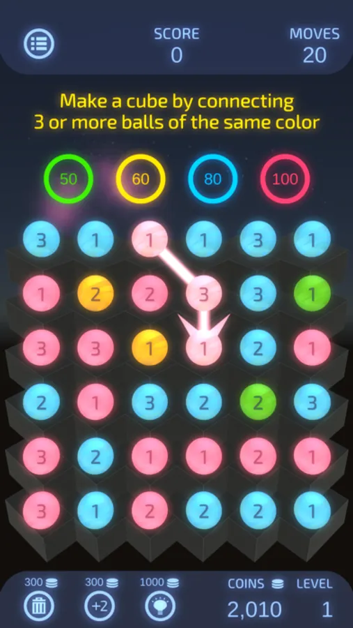 Although the rules are simple—just connect 3 or more balls of the same color and number—Dual Match 3 is unique in that scores vary greatly depending on the connection path.