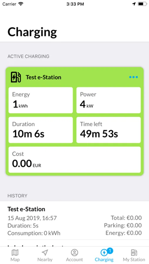 ▸ View the history of your previous charge sessions, including costs of the charge session, location details and amount of volume charged.
