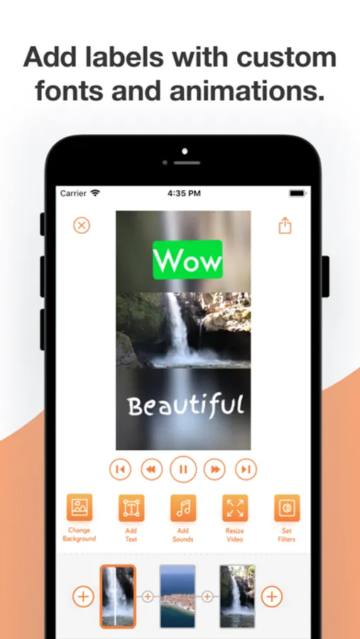 * Add labels to the Stories. Perfect for adding titles to landscape videos! Set the exact time position of the labels on the video.