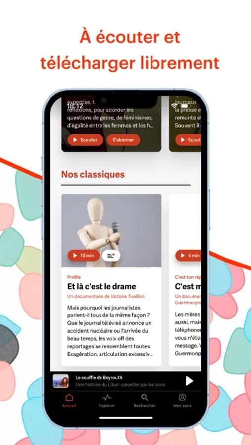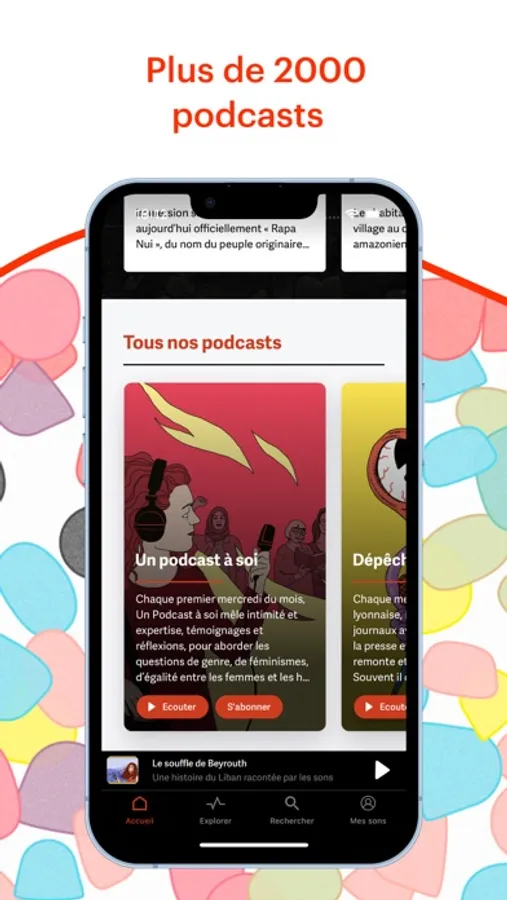 La pionnière du podcast propose chaque mois des rendez-vous de référence sur les féminismes (Un podcast à soi par Charlotte Bienaimé), les écrivains d’aujourd’hui (Bookmakers de Richard Gaitet), mais aussi de bons conseils pour surmonter nos crises écologiques ou intimes (Vivons heureux avant la fin du monde par Delphine Saltel), ainsi qu’un « dessin d’humour sonore » signé Olivier Minot (Dépêche).