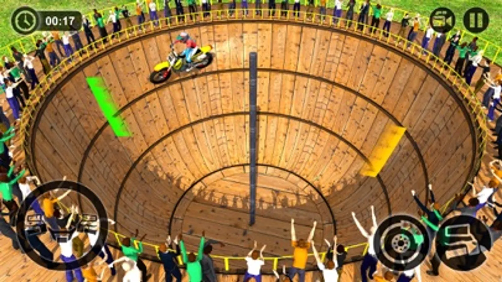 Stunt riding in death well is not a easy task you need to perform realistic rotation around the well with dirt bike stunts. Don't hit other heavy bikes and luxury motor bikes in the arena. With xtreme moto bike driving skills perform real stunts in stunt zone. The daredevil aerobatics can be a risk for life so drive safely in death well to become the legend of well of death. You need to be a fearless driver to complete all the challenging levels that are full of thrill and fun.