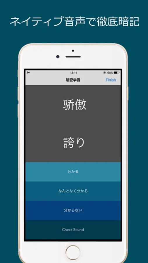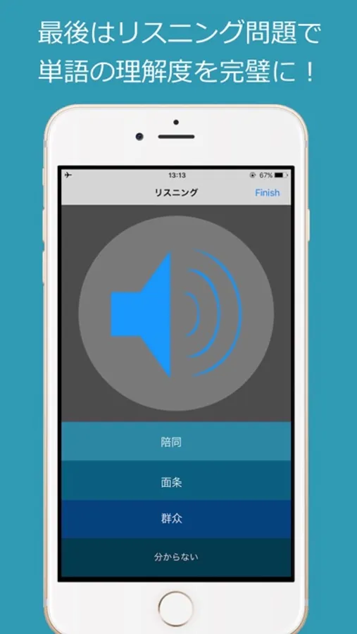 一般的な中国語単語を学習する教材はスペルを見ながら1つずつの語彙を確認していきますが、このアプリでは音声を聞き、それに相応しい日本語を選択するという形式を採用しているため、単語の意味を覚えながら同時にリスニング対策、発音・アクセント対策をすることも可能です。また北京語によるネイティブ音声を採用しているため、日本人特有のアクセントを抜け出し、将来、グローバルに活躍するための基盤を構築する事ができます。