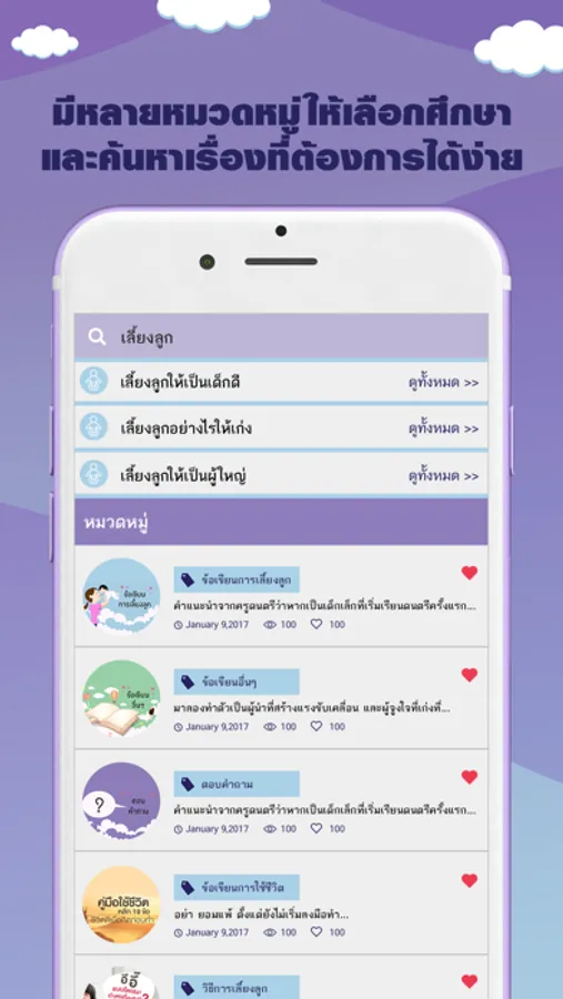 พ่อแม่สามารถรับการแจ้งเตือนที่มือถือทันทีเมื่อมีเนื้อหาใหม่ๆจากคุณหมอ