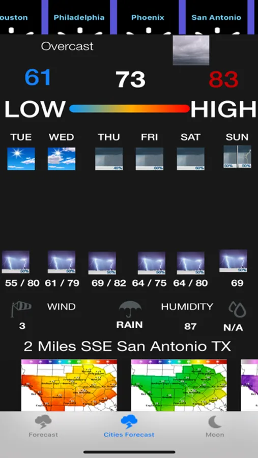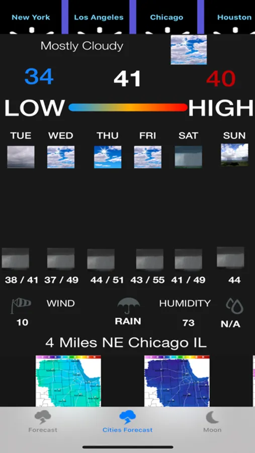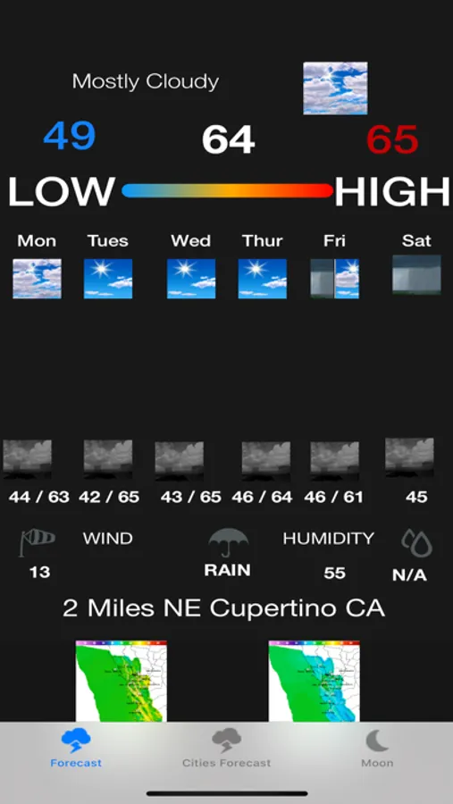 This app provides you the instant weather forecast for more than 500 US cities. It also provides you the instant weather forecast based upon your current location (For outside US, it will be a US city near by). Click on Search button and input any US location for the weather forecast. Click on Home button again to go back to local Forecast.