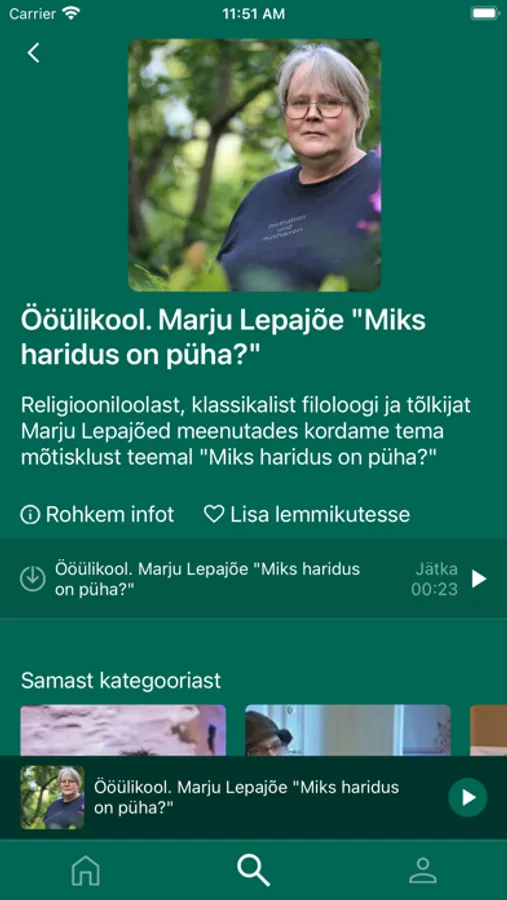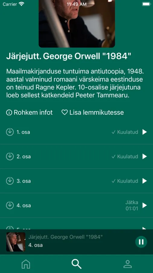 Raadioteatri äpis saad saateid oma lemmikute nimekirja lisada, jätkata kuulamist kohast, kus see viimati pooleli jäi ning salvestada sisu oma seadmesse, et seda hiljem lennureisil või ka näiteks levist kaugel looduses kuulata.