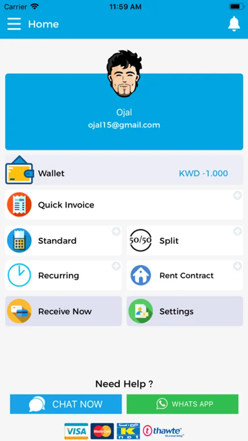 Tahseeel.com is a platform specially built to reduce the stress of invoicing and receiving money through online. You just have to register. You are ready to send invoices to your customers via SMS, Email and Whatsapp, the customer can pay via KNET or International credit cards.