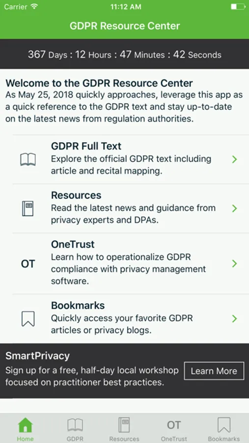 As the GDPR enforcement date of May 25, 2018 quickly approaches, leverage the GDPR Resource Center application as a quick pocket reference to the GDPR text in your preferred language (English, Danish, Dutch, French, German, Italian, Spanish, or Swedish). Stay up-to-date on the ongoing regulations from authorities and learn how OneTrust can help your organization operationalize compliance.