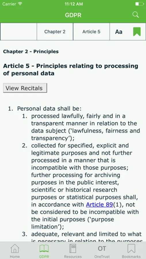 • Full General Data Protection Regulation (GDPR) text including recital and Article mapping