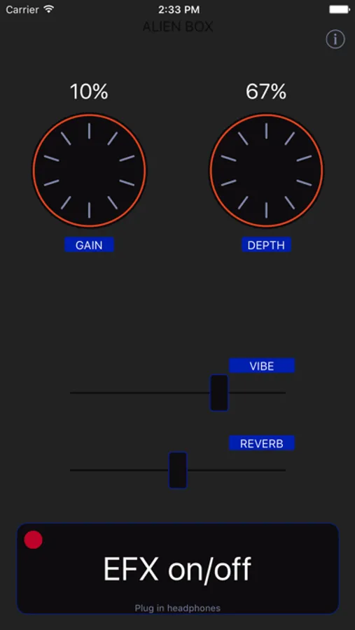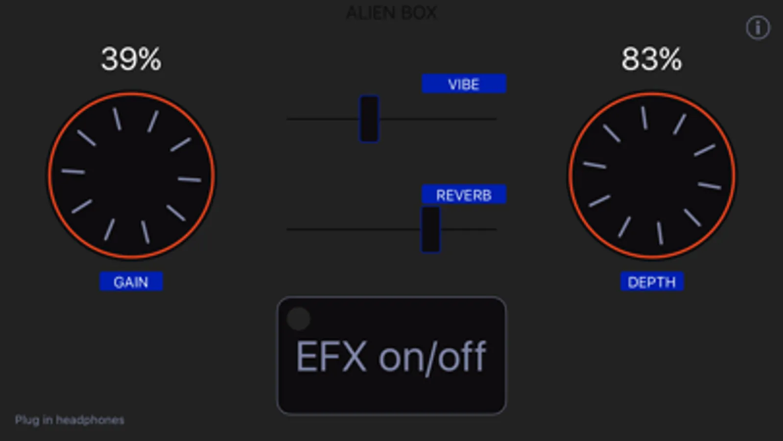 The app is an Audio Unit Effect AUV3 and can be used inside GarageBand or other AU host apps as an effect plug-in. Alien Box can also run as a stand alone app adding effect to the audio input so you can play your guitar, bass or synth directly three the app if you have the connector to do so.