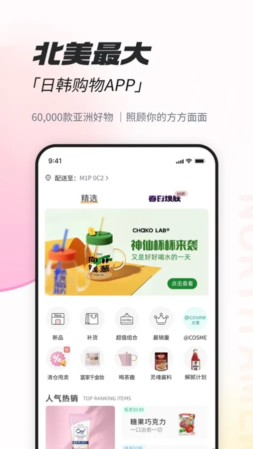App内所售商品涵盖护肤美妆、零食速食、日本美瞳、母婴用品、厨房电器、家居百货、美容仪器、宠物用品等数十种品类,与多家品牌商,官方代理商等建立了深度合作关系,并与肌美精、ITO、JM Solution、Wonjin Effect等日韩知名品牌携手推出联名商品,力争将信誉和品质做到最优。