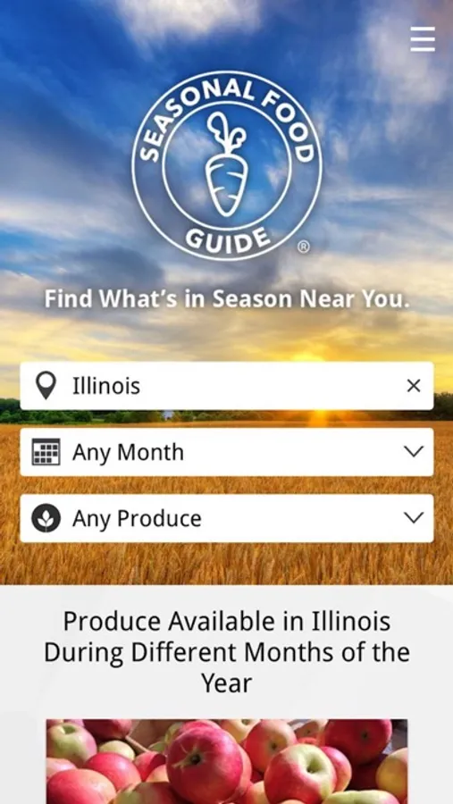 ● Search what’s in season at any time of year in each of the 50 states.