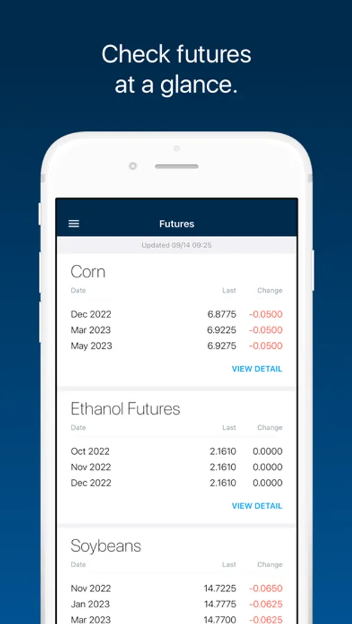 Futures: See Grains, Feed, Livestock, and Ethanol futures listed in order of your preference