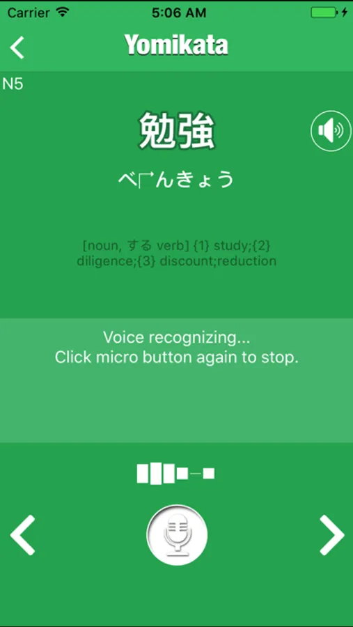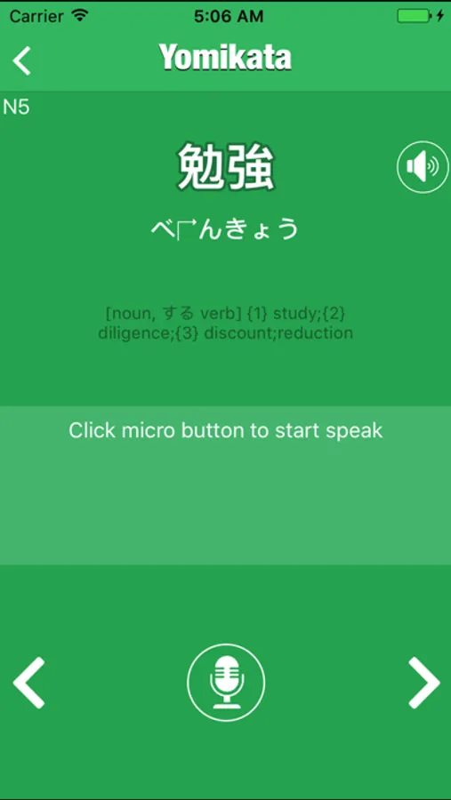 Yomikata is the best application to practice your Japanese pronounce. You can upgrade your pronoun skill by Speech Recognition feature within this app.