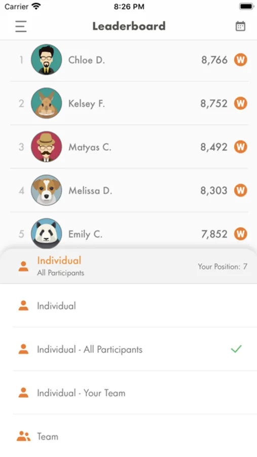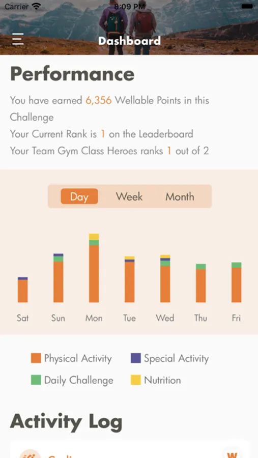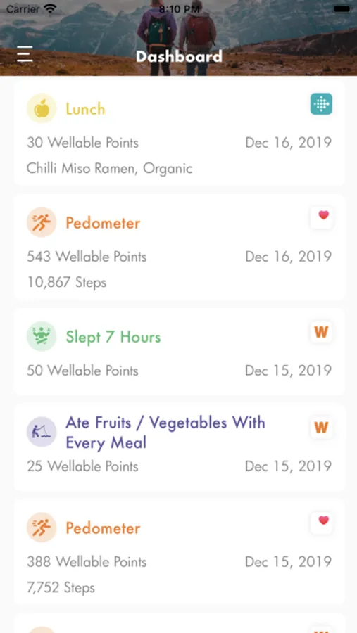 • Log and earn Wellable points for workouts, daily healthy habits, and company organized events