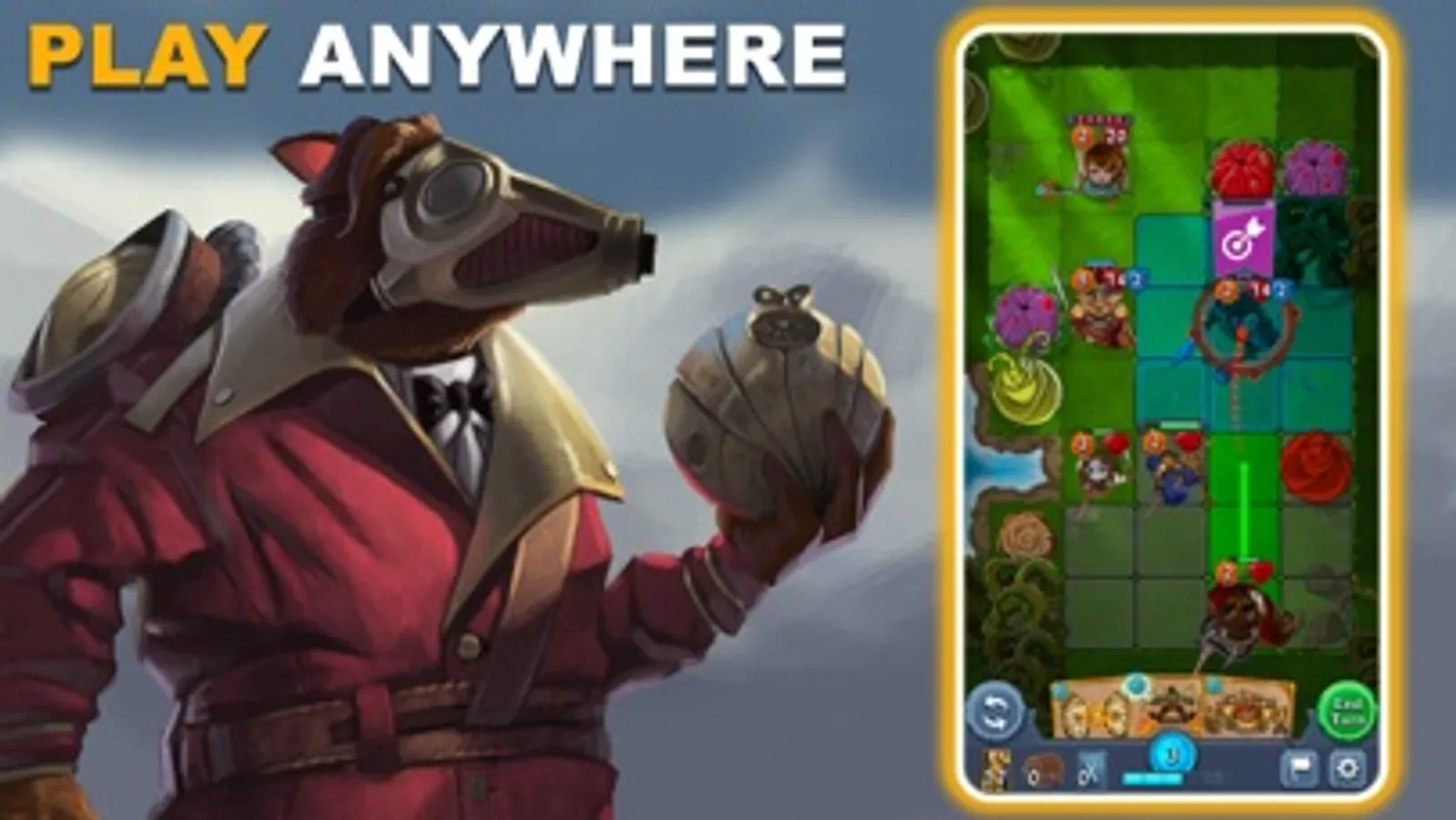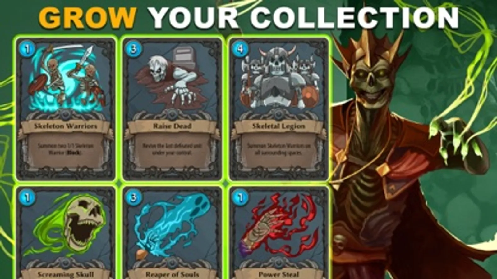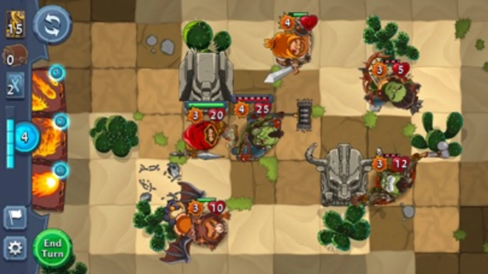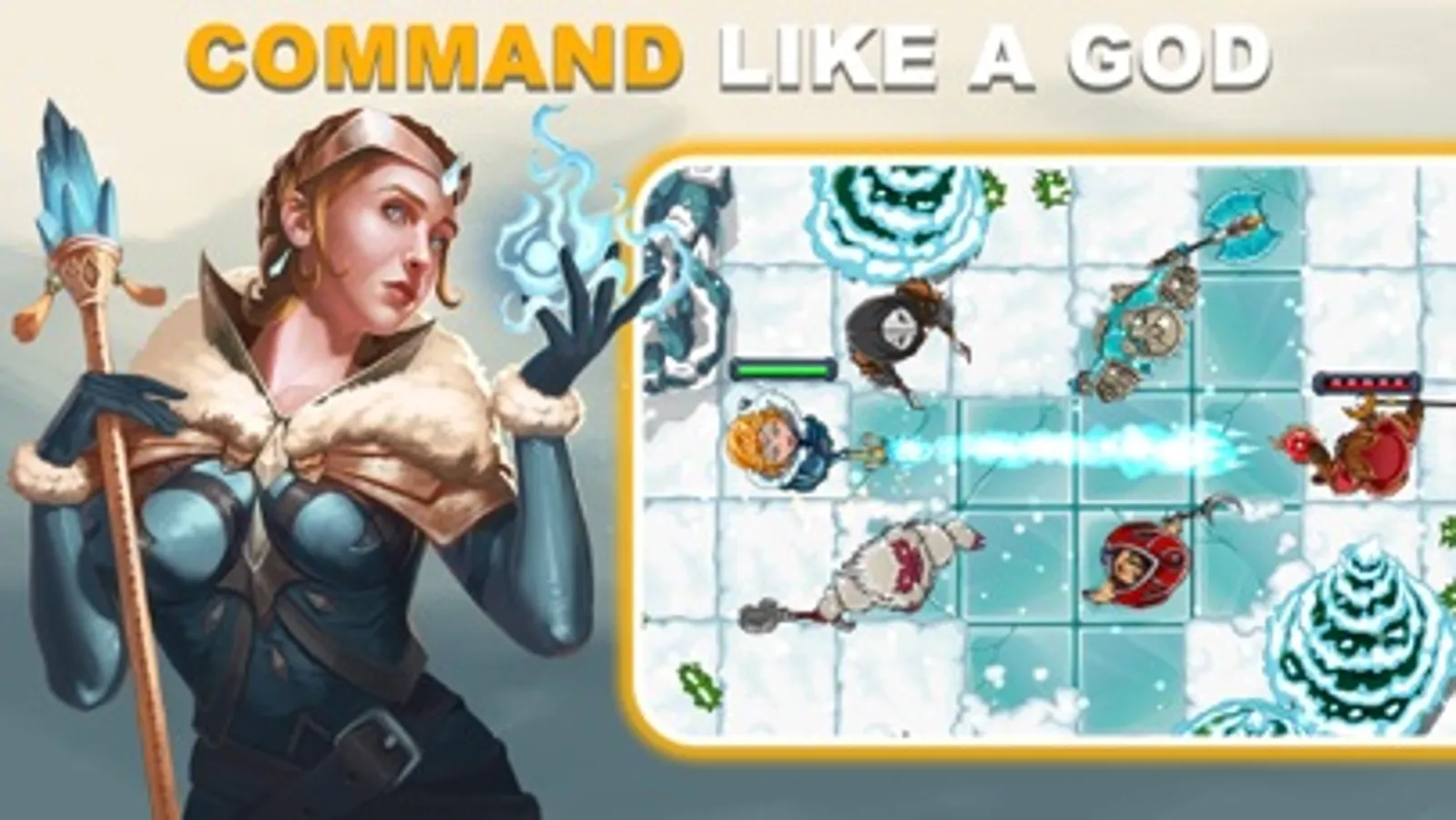 Command from a top-down perspective that gives you ultimate control over battlefield tactics. Your characters look up to you (literally) as their god to indicate they are ready to receive your orders. Commands are intuitive: Drag cards to cast spells. Drag warriors to enemies to attack. Drag healers to injured allies to heal. Play fast and fluid with 3-5 minute battles and without having to wait for animations. You can even undo failed attacks to try different approaches. Endless possibilities are at your fingertips!
