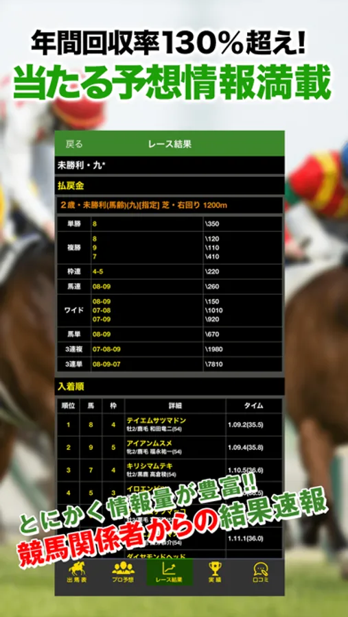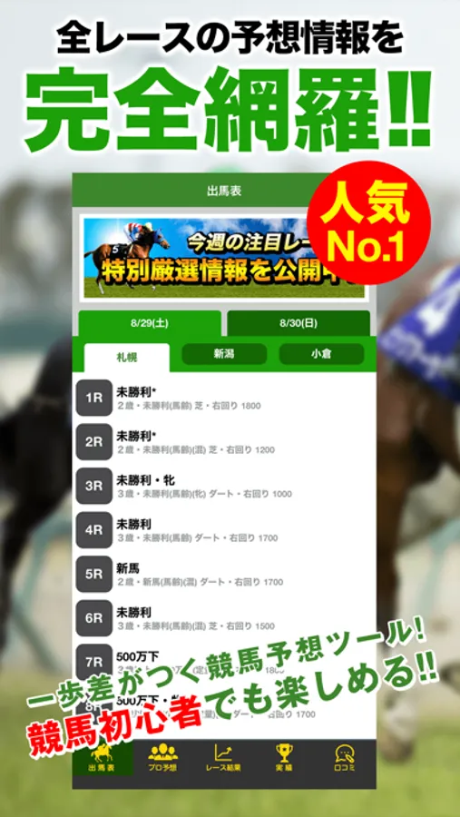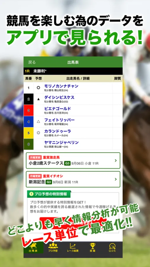 JRA競馬の全レース情報や予想をアプリに搭載です。