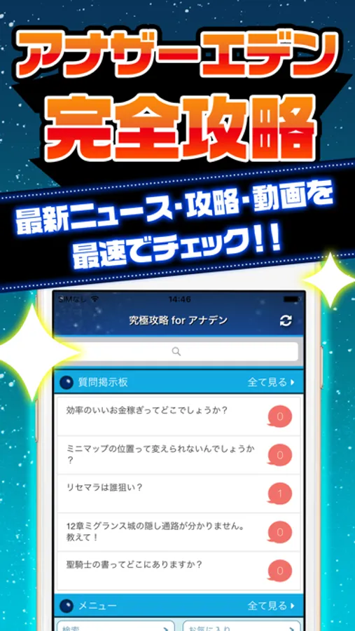 最新ニュース、攻略まとめ、実況動画、掲示板をこのアプリ1つで全て網羅!