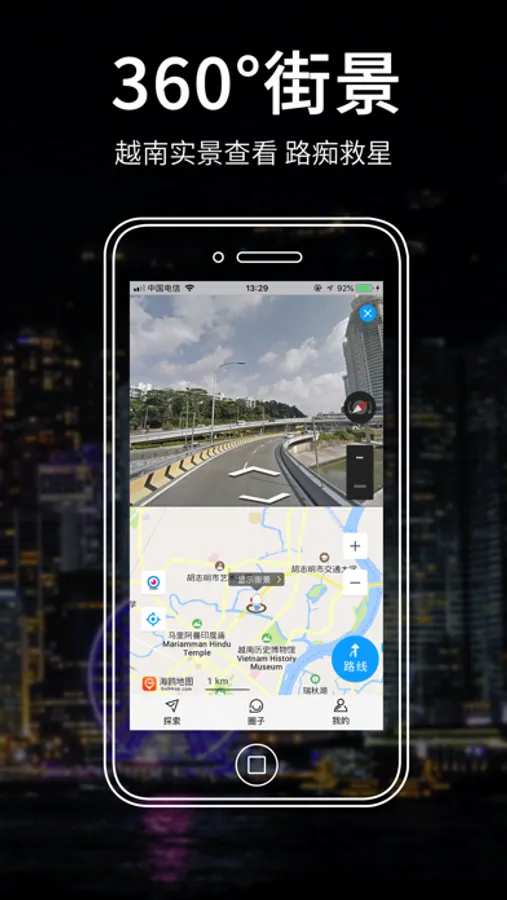 在越南地图中可以浏览越南各个地点的真实环境,360°实景查看,亲临现场的实景感!