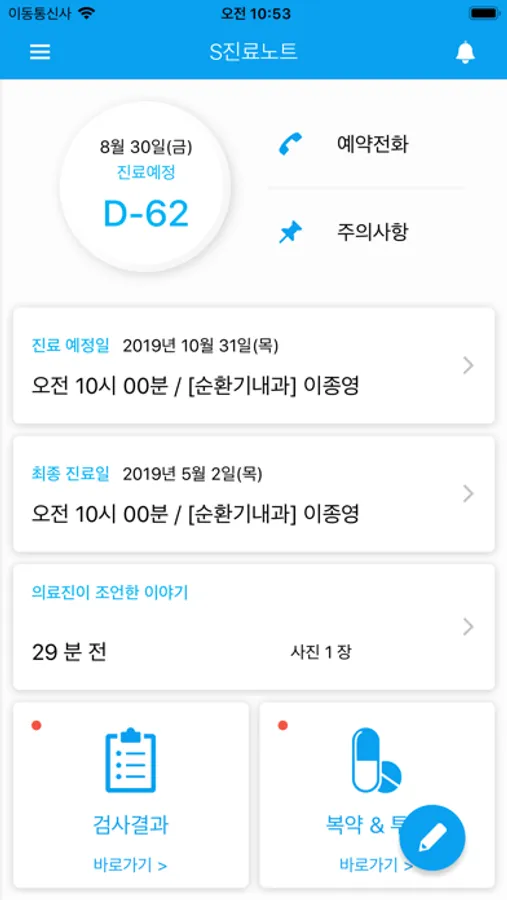 진료기록, 처방전 내역을 스마트폰에서, 맞춤진료정보와 메모도 S진료노트와 함께 하세요.