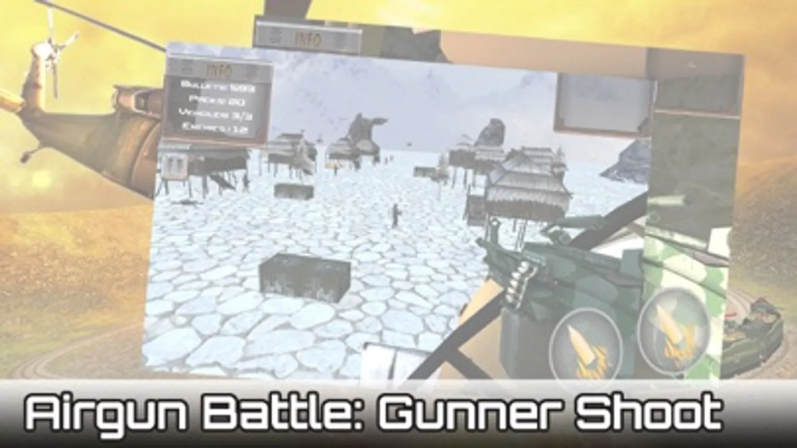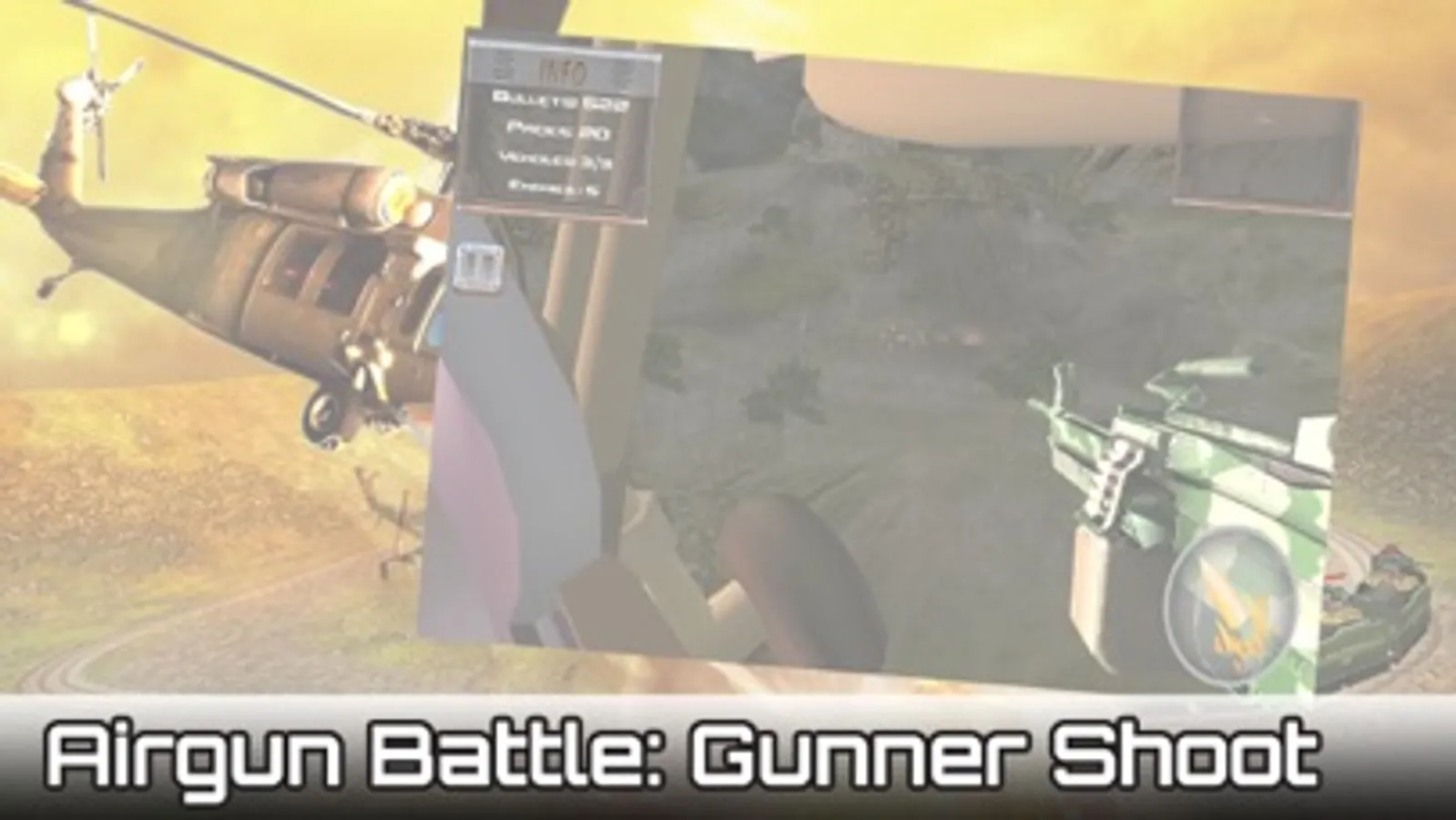 Experience the best shooting action pack game. Airgun Battle: Gunner Shoot pits you against deadly enemies. You are the Gunner in a helicopter gunship and you have to wipeout the enemies.