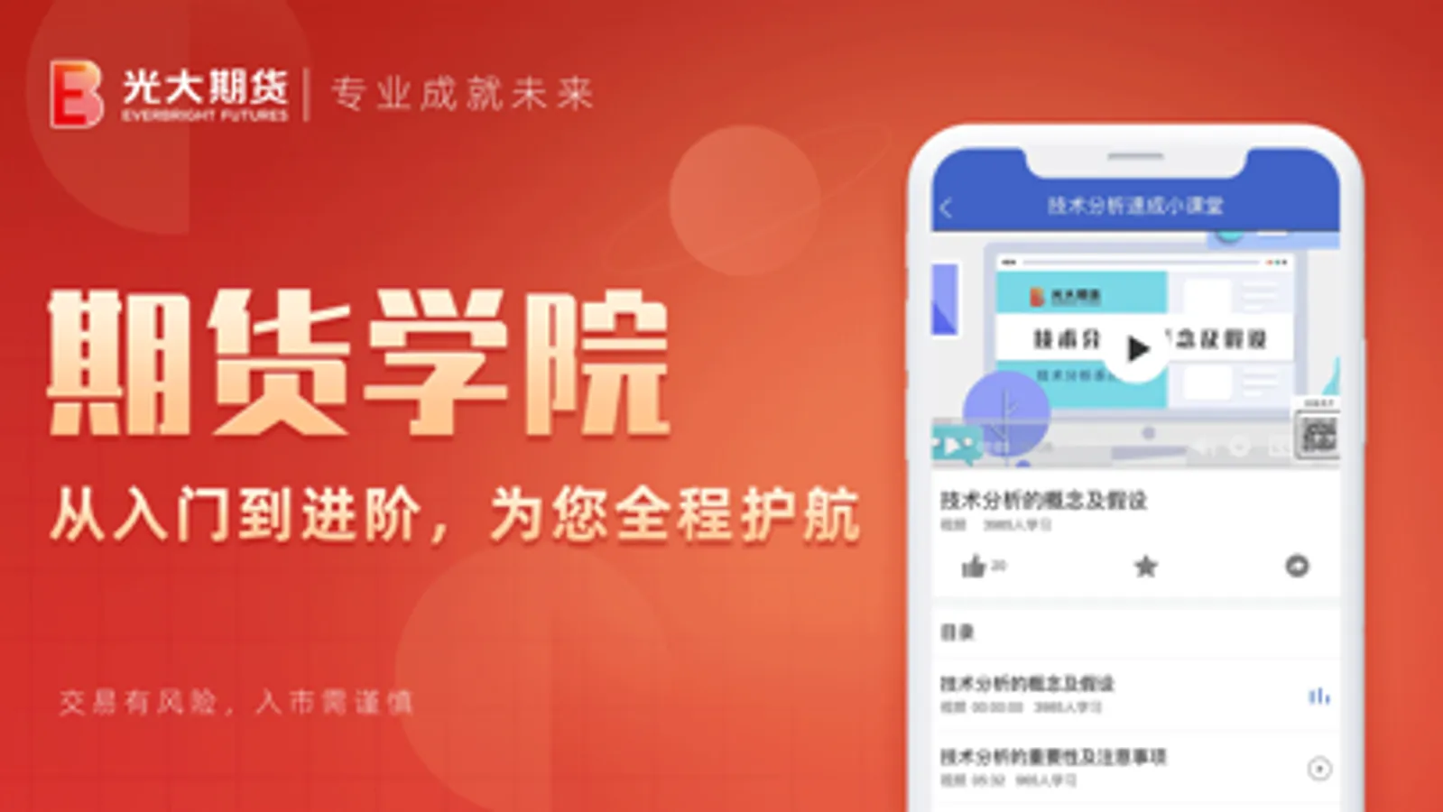 光大期货作为国内领先的期货公司,秉承“专业服务,诚信经营,创造价值,追求卓越”的经营理念,依托经验丰富,专业高效的工作团队,始终把投资者的需求放在第一位,全力打造一流的交易、服务平台。光大期货APP为您提供各类行情资讯、手机开户、掌上交易、业务指南、客户服务等移动互联端的综合服务,让您随时随地、方便快捷感受我们专业高效的服务。