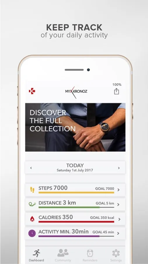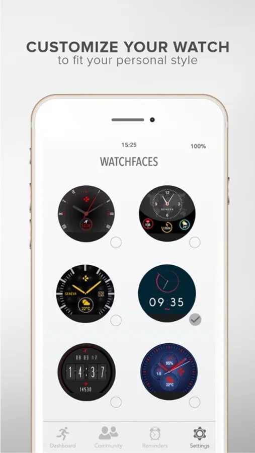 From ZeRound2 free mobile app, you can choose a watchface from a variety of designs, set daily goals and reminders. The app helps you track your daily activity, so you can keep an eye on your performance and progress.