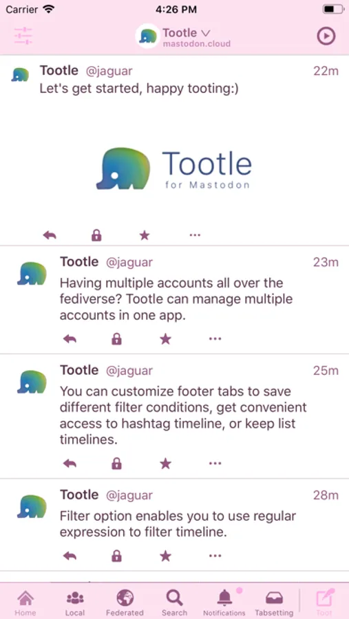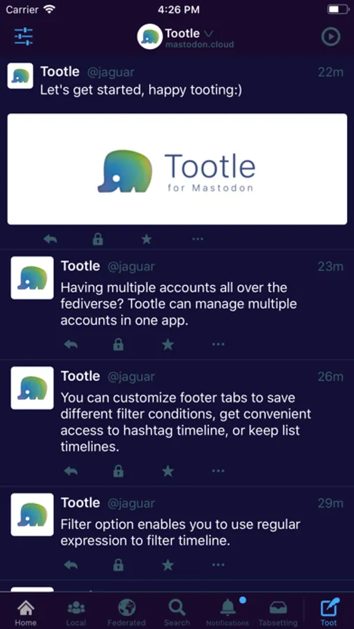 Tootle is a multifunctional Mastodon client, and above are examples of its features.
