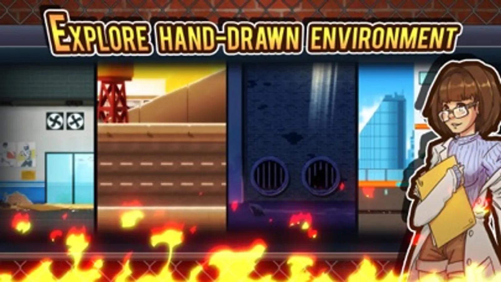 CHIKA is a smart and cute scientist, although a bit clumsy. She created vaccines to fight the virus loaded in the toxic wastes, spread by the evil Corporation. With this knowledge, the Corporation tries to stole her research for their own advantage.