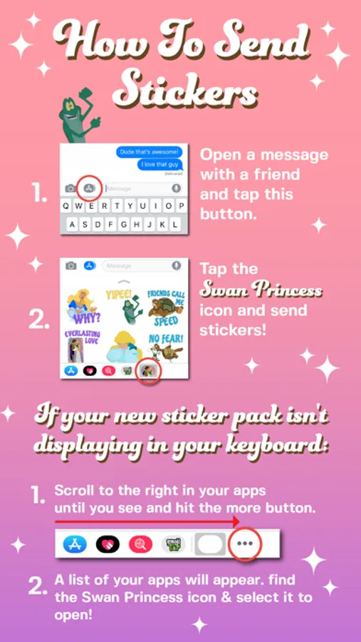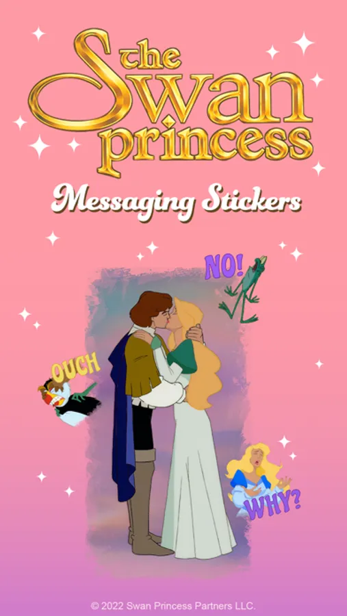 Express yourself in royal style with this sticker pack from The Swan Princess. The genuine Princess Odette, her adventurous pack of friends, and the sharp shooter Prince Derek will make sure you get your point across. The Swan Princess sticker pack includes 24 stickers, including 11 animated GIFs.
