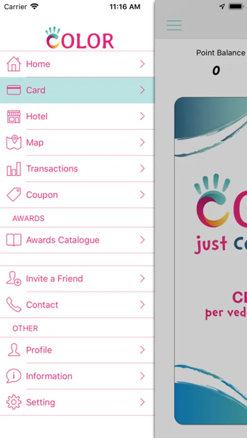 In addition to the Virtual version (on this App), the Card can be picked up at the Hotel on the day of arrival and you can check your updated points balance every day by logging into our website.
