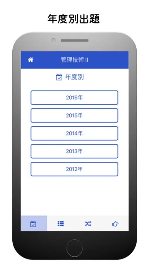 年度別出題に加え、分野別出題や、出題年・問題番号を指定して特定の問題を直接表示させるなど、機能も充実しています。