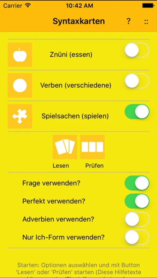 Die App ist auf dem gleichnamigen Lehrbuch 'Syntaxkarten' aufgebaut (Informationen und Copyright: www.daz-aktiv.ch/).