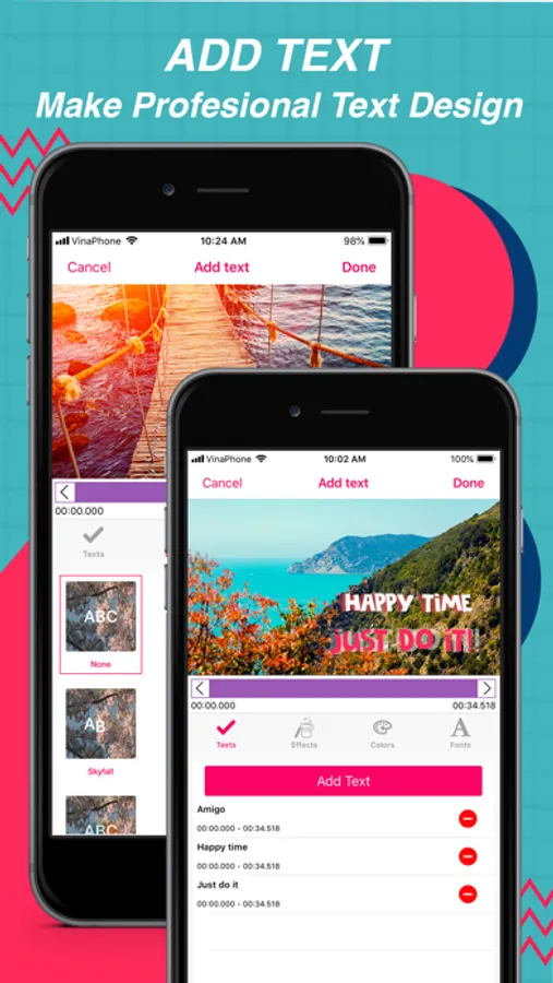 Just a few taps, you completly merge multiple videos with music, effect, filter.. especially transition between clips. Let your memorable moment more funny, more deeply and more extremely thrilled when you share it to your family and friends via social medias.