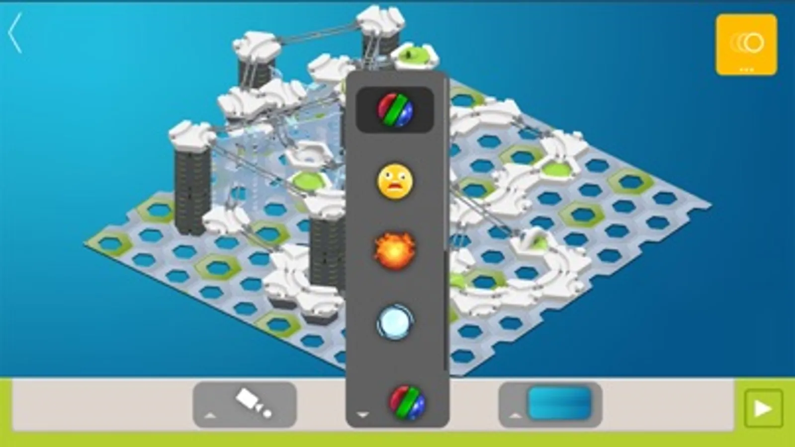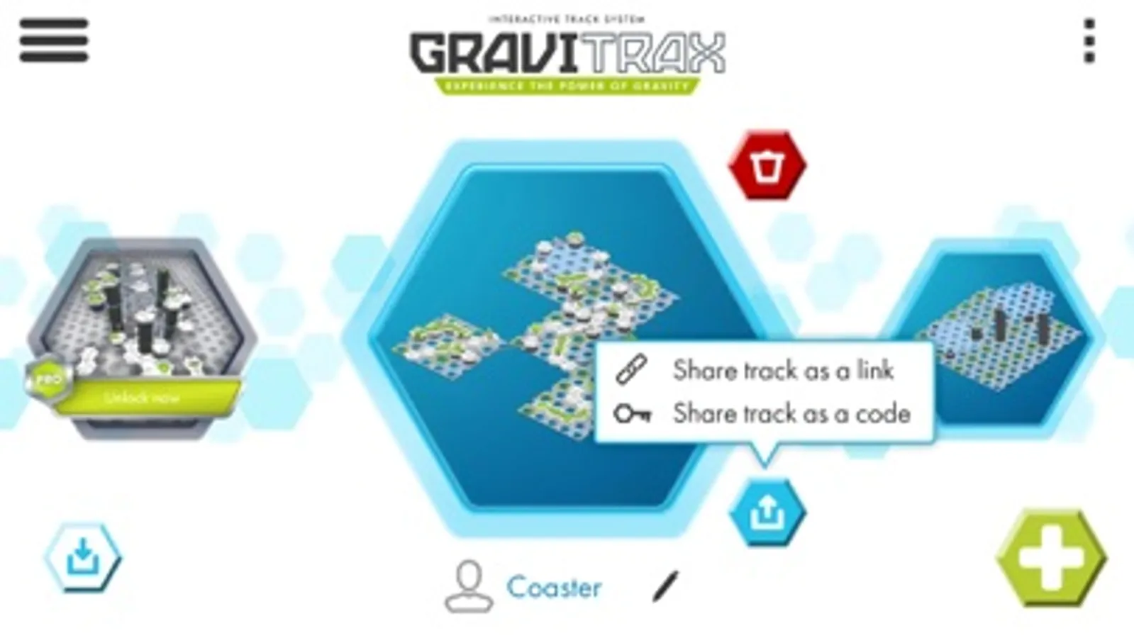 GraviTrax – the interactive ball track system from Ravensburger for your mobile or tablet. Use the free app for the GraviTrax ball track system with its free editor to build your very own fantastic tracks, and then roll the balls as you watch from different angles. Try endless new combinations and come up with new ideas to build your tracks. Experience the tracks interactively and follow the balls from a variety of camera angles – including in Virtual Reality if you have the right glasses and a compatible phone. And in the latest version of the app you can share you tracks with your friends.
