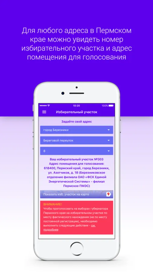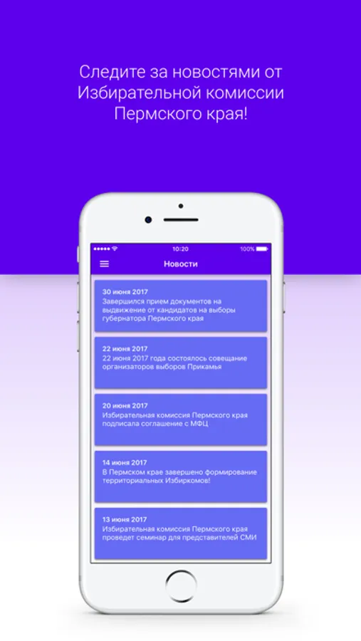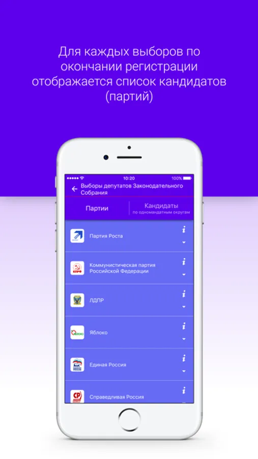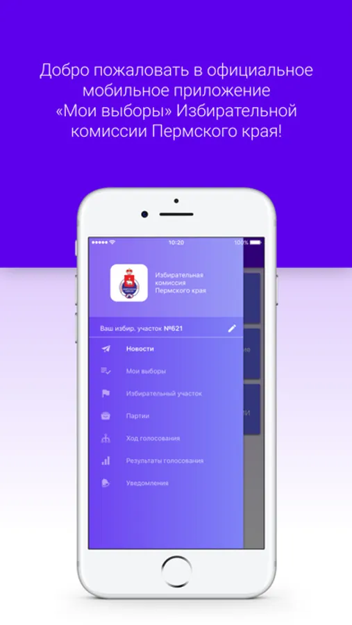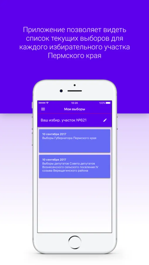Приложение предоставляет данные о выборах в простом и удобном для восприятия виде и содержит только самую необходимую для избирателя информацию. Автоматическая рассылка уведомлений своевременно оповестит об основных событиях избирательной кампании.
