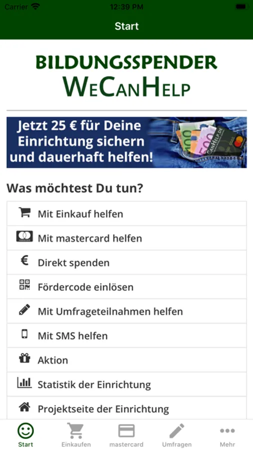 Bildungsspender | WeCanHelp gehört zu den erfolgreichsten Charity-Kauf-Plattformen in Deutschland. Das Prinzip: Ohne Mehrkosten beim Shoppen helfen. Du startest Deine Einkäufe bei uns, kaufst wie gewohnt ein und wählst eine Einrichtung oder Projektgruppe aus, die finanziell mit Hilfe des Geldes der Shops unterstützt wird. Auch direkte Spenden und Hilfe per SMS sind möglich.