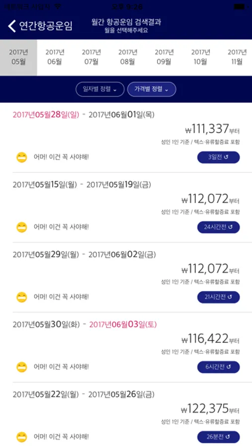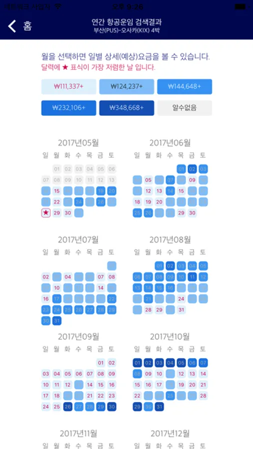 * 연중 저렴한 여행일정 찾기