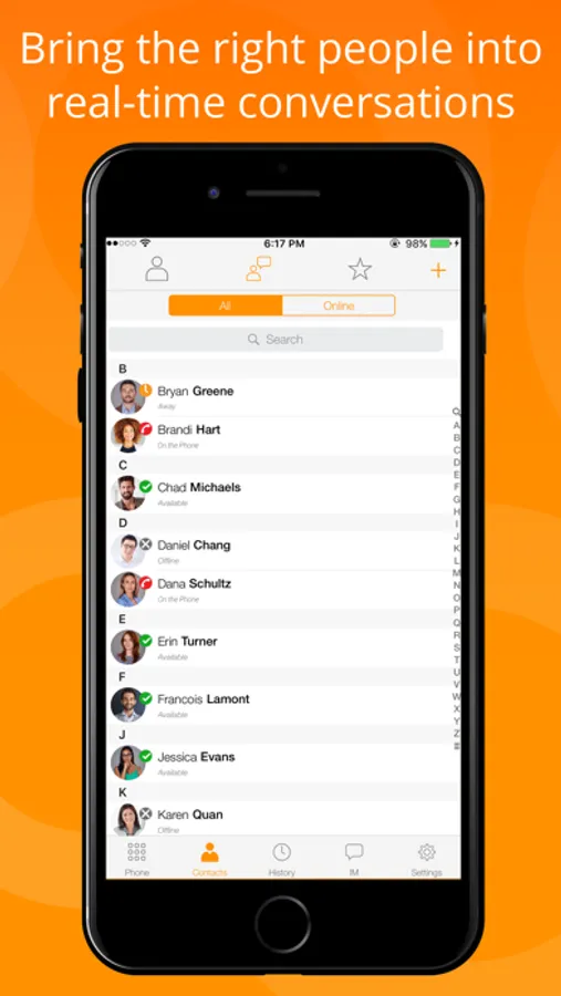 Stay connected wherever you go, leveraging your call server or VoIP service. Includes HD audio and video support, along with XMPP & SIP SIMPLE support.
