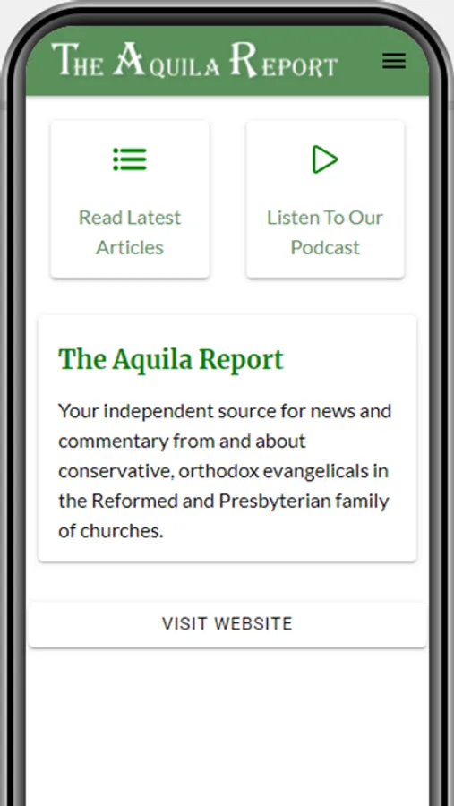 The Aquila Report is an independent web magazine containing content of interest primarily for and about those in the evangelical and confessional wings of the Presbyterian and Reformed family of churches. At this point in our life, we are primarily an aggregate publisher, meaning the vast majority of our content comes from third party sources such as other publishers and bloggers.