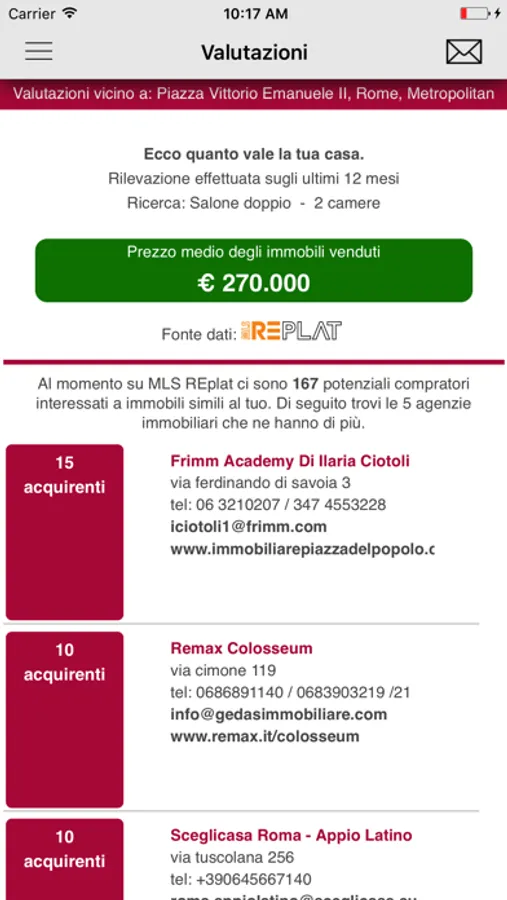 - ottenere valutazioni in tempo reale immobili "around me" (tramite GPS)