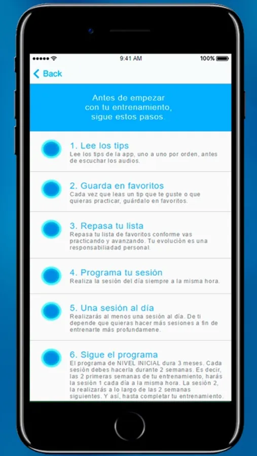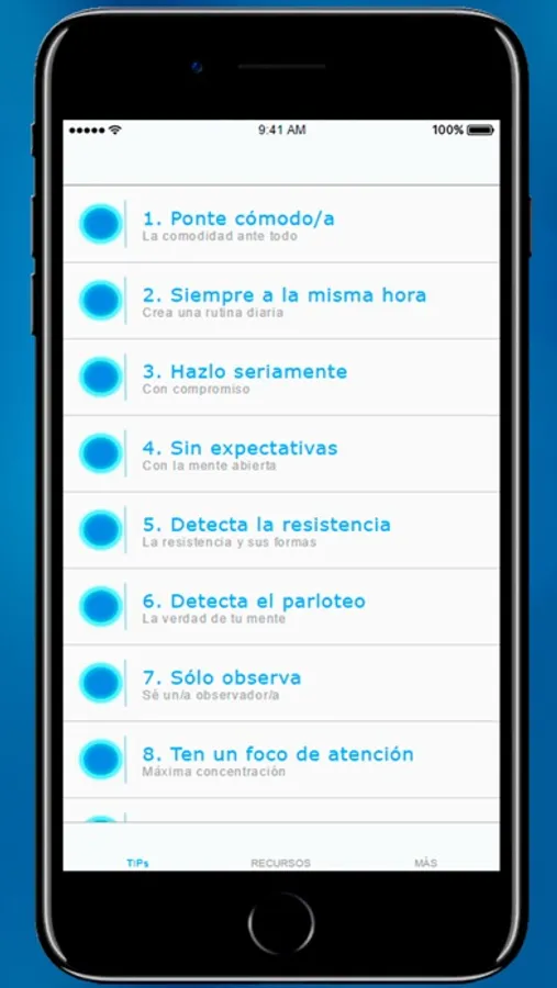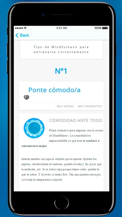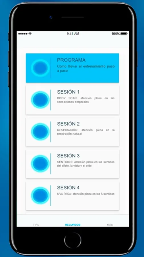 - Audios: sesiones de meditación guiada paso a paso