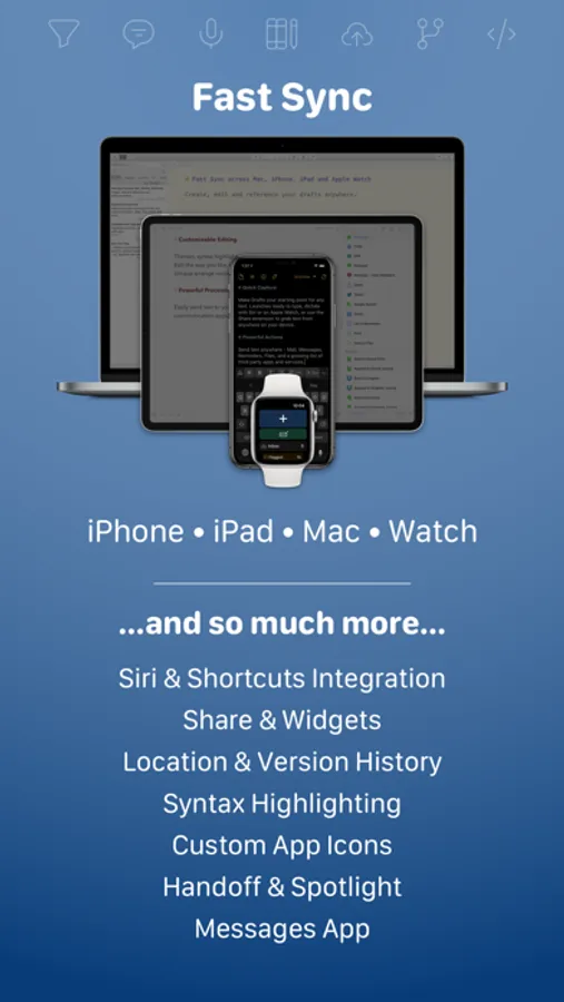 Drafts helps you write ideas down before you can forget them so and they’ll always be there, ready and waiting. Capture on iPhone, iPad, Mac, and Apple Watch, and Drafts’ fast sync will make your text available everywhere.