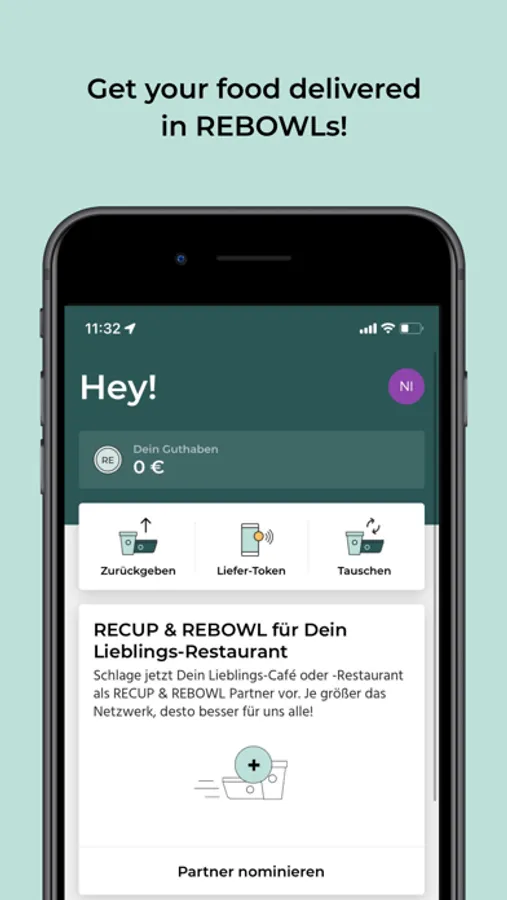 The RECUP & REBOWL app for customers gives you an overview of the cafés, restaurants, etc. where you can actively save packaging waste with the RECUP and REBOWL deposit system. You can also use the app while ordering from selected Lieferando & Uber Eats partners to receive your food in REBOWLs. Is your favorite restaurant not yet part of the REvolution? Then nomminate it via the app!