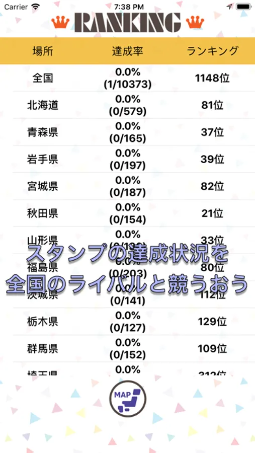 〇日本全国のユーザーと達成率を競える!