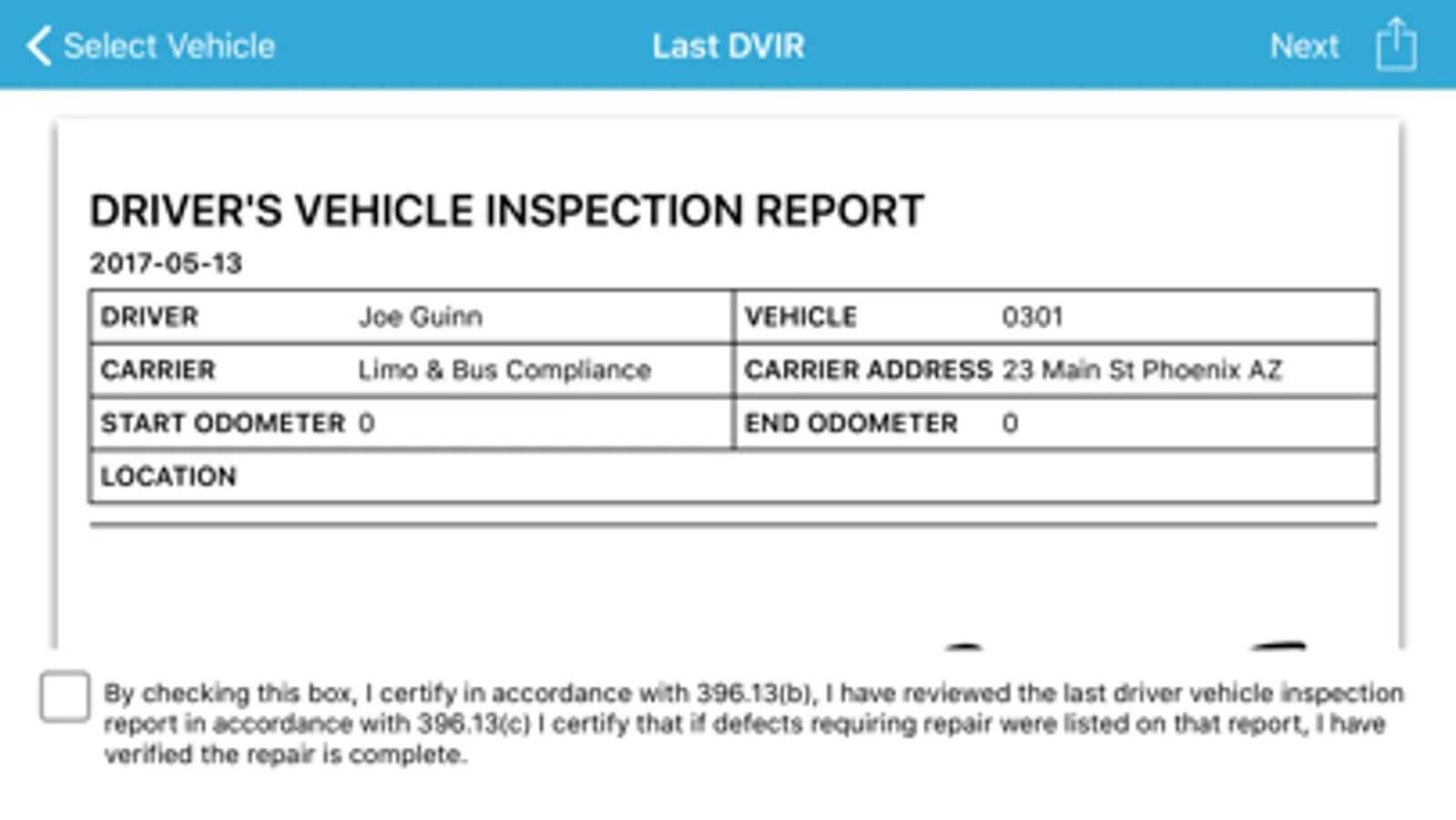 Pocket Fleet Manager provides a fully compliant digital DVIR including the ability for a driver to review previous DVIR with mechanic or supervisor signature and notes.