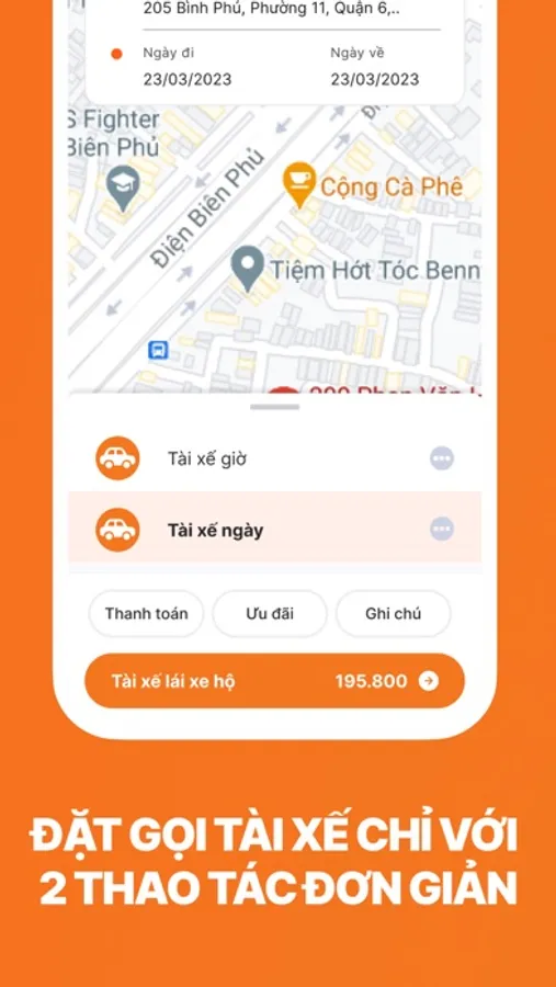 - Đặt gọi tài xế chỉ với 2 thao tác đơn giản