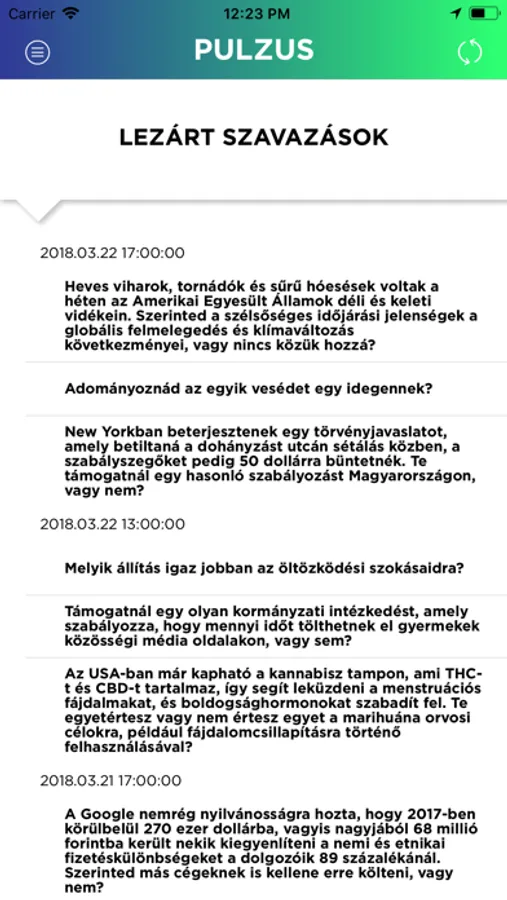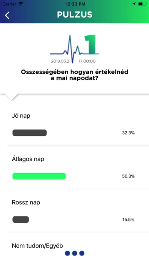 Alkalmazásunkban naponta több körben teszünk fel neked kérdéseket a világ legújabb fejleményeiről, technológiai áttörésekről, közéleti ügyekről, szokásokról, mindennapokról. A válaszaid után láthatod, hogyan válaszoltak az alkalmazás használói.