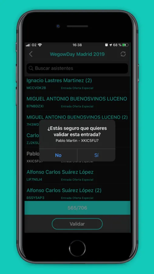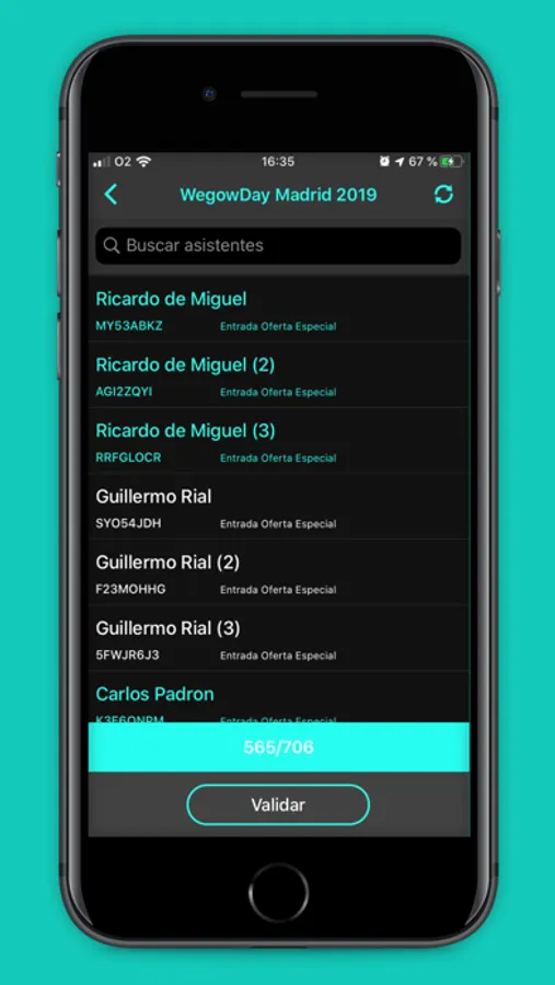 - Validation can also be done manually by searching by name and / or surname, being very useful when someone forgets or loses their ticket, having to show their ID.